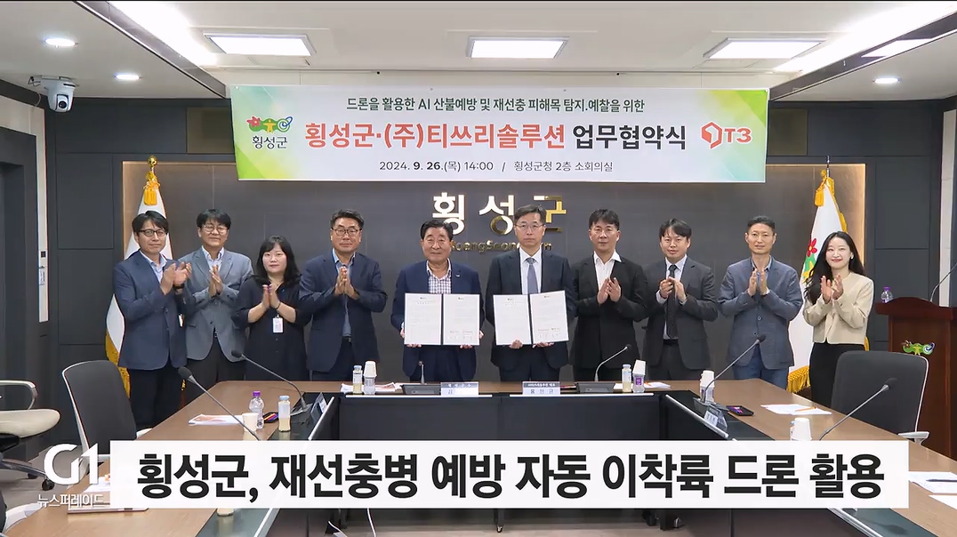 횡성군은 오늘(26일) 주식회사 티쓰리솔루션과 업무협약을 맺고 소나무 재선충병 초분광 카메라 촬영 공간과 인프라 제공, 자동 이착륙 가능한 드론 활용 등에 협력하기로 했습니다.