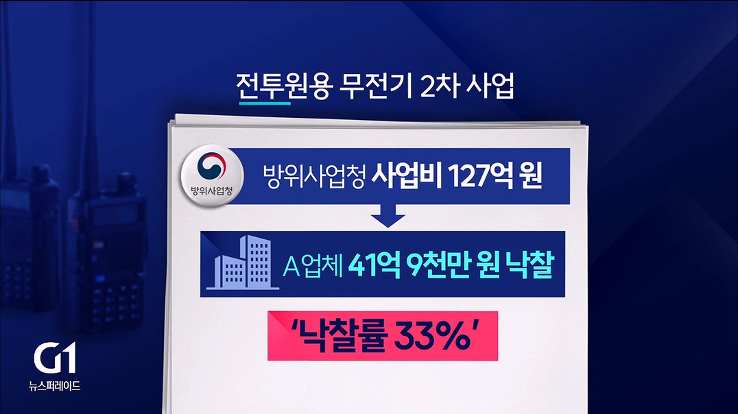G1방송은 지난 2024년 9월 24일부터 10월 31일까지 61회에 걸쳐 TV 방송 및 홈페이지, 유튜브를 통해 우리 군이 납품받은 전투원용 무전기가 통신거리가 짧고, 방수가 안되며 전원을 끄지 않은 채로 배터리를 빼면 채널 정보가 삭제되는 등 성능이 떨어지고, 1, 2차 무전기 간 호환도 되지 않으며, 불량률도 높아 결국 무전기 개선에 20억을 추가로 투입 예정이고, 입찰 과정에서 납품업체에만 특정 정보를 줬다는 특혜 의혹도 불거졌다고 보도했습니다.