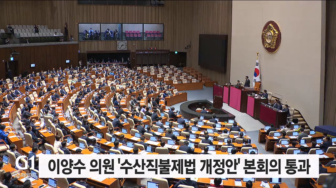국민의힘 이양수 의원이 대표 발의한 '수산직불제법' 개정안이 국회 본회의를 통과했습니다.