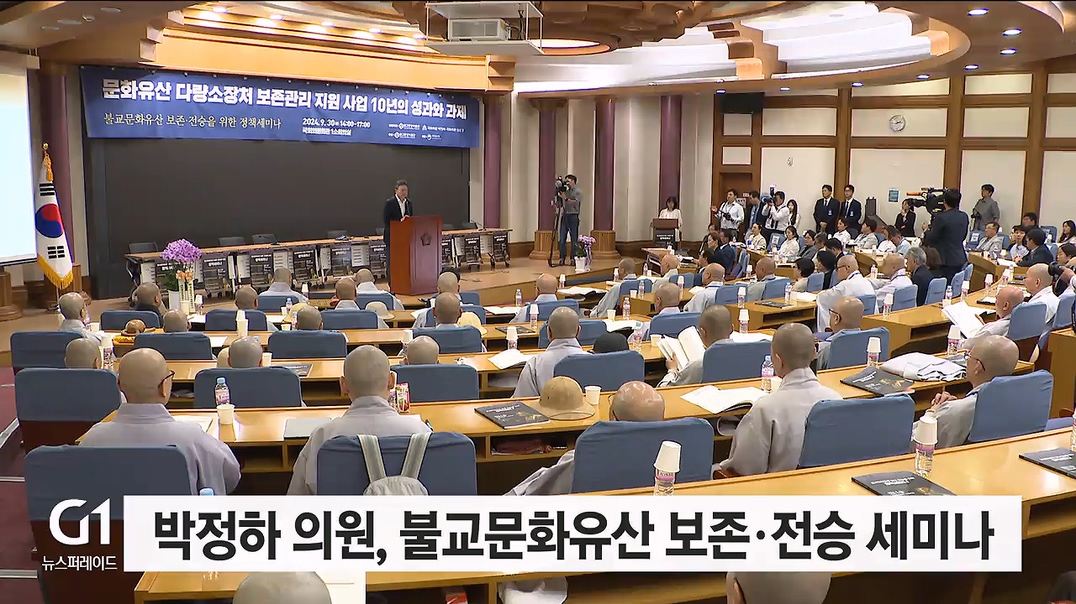 국회 문화체육관광위원회 여당 간사인 박정하 의원이 주최한 오늘(30일) 세미나에는 불교중앙박물관장 서봉 스님을 비롯한 불교계 관계자와 문화계 관계자들이 참석했습니다.