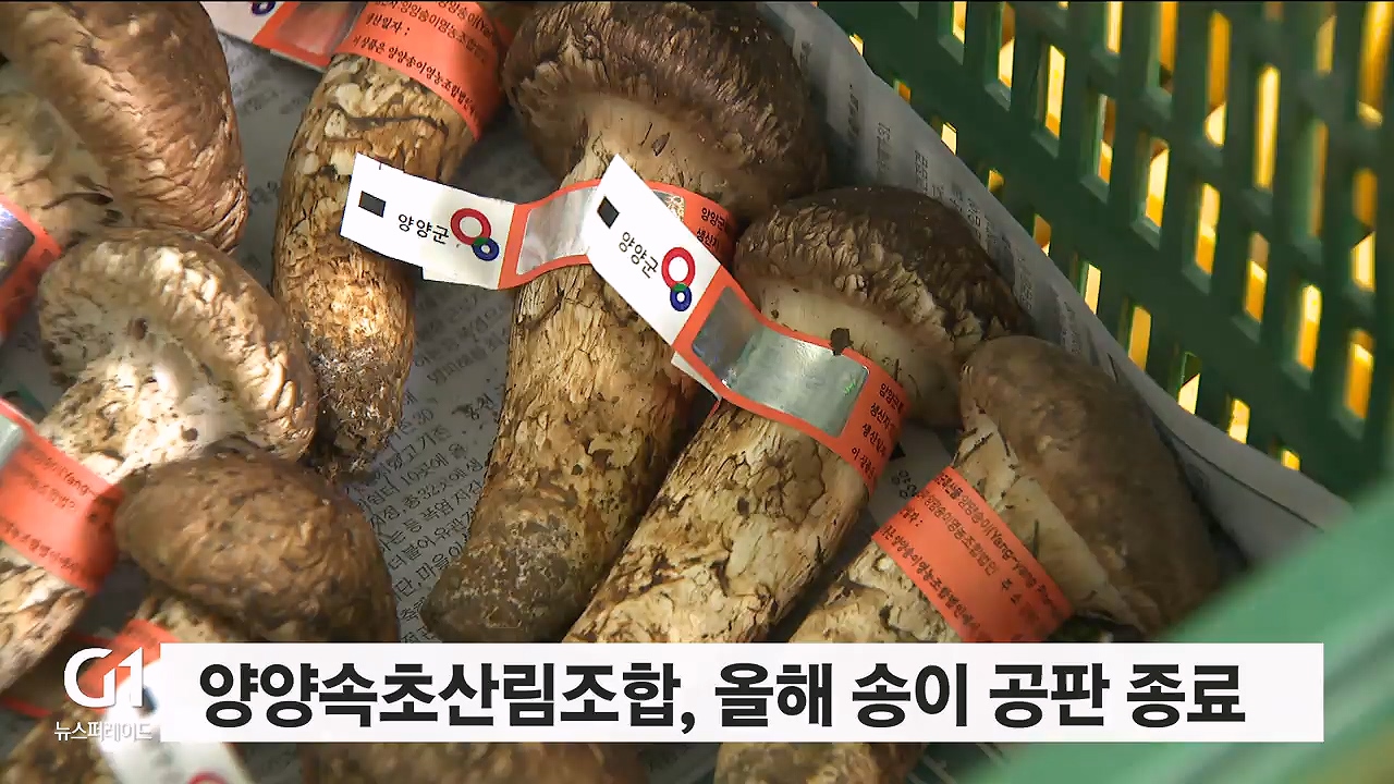 송이 공판은 하루 수매량이 30kg 이하로 사흘 이상 지속되면 공판을 종료하는데, 지난 25일부터 3일 연속 수매량이 30kg 이하로 떨어지면서 28일부터 공판이 중단돼 공식 종료됐습니다.