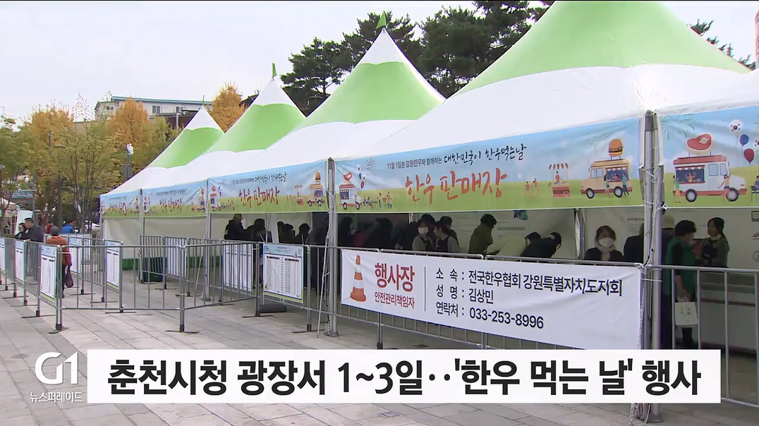 한우자조금관리위원회와 전국한우협회 강원자치도지회는 오늘(1일)부터 사흘간 춘천시청 호반광장에서 '한우 먹는 날' 행사를 엽니다.