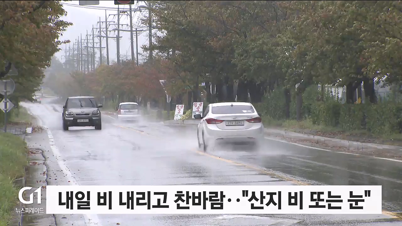내일 비 내리고 찬바람.."산지 비 또는 눈"