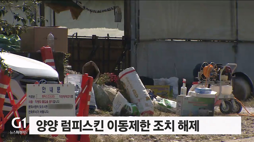 지난달 10일 발생 이후 해당 방역대 내에서 4주간 추가적인 럼피스킨 발생이 없었으며, 발생농장 환경검사와 방역대 농장 소에 대한 임상‧정밀검사에서도 모두 음성으로 확인돼 방역조치가 해제됐습니다.