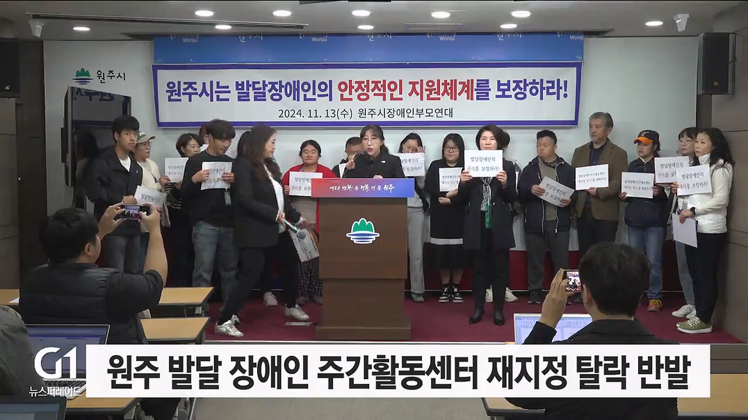 사단법인 강원도장애인부모연대 원주시지부는 원주시청에서 기자회견을 열고 "원주시는 최근 6개 발달 장애인 주간활동센터중 2개 기관을 재지정하지 않기로 했다"며,