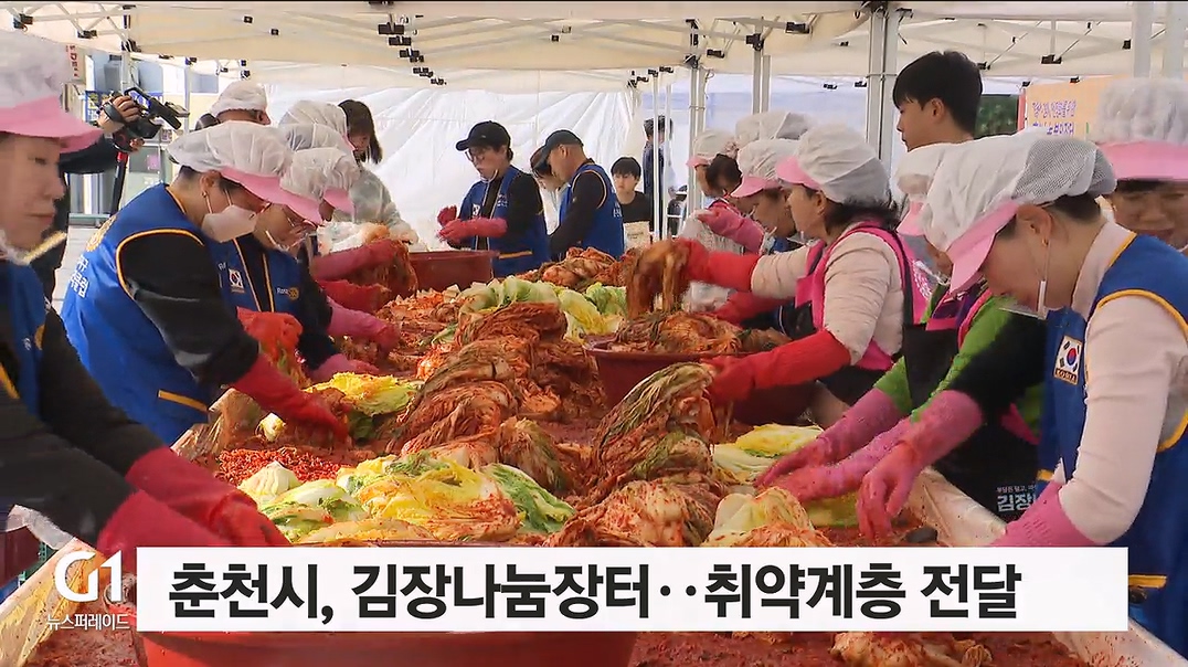 춘천시가 오늘(15일) 오전 시청 광장에서 김장나눔장터를 열고, 김장김치 250상자를 지역 취약계층 가정에 전달했습니다.