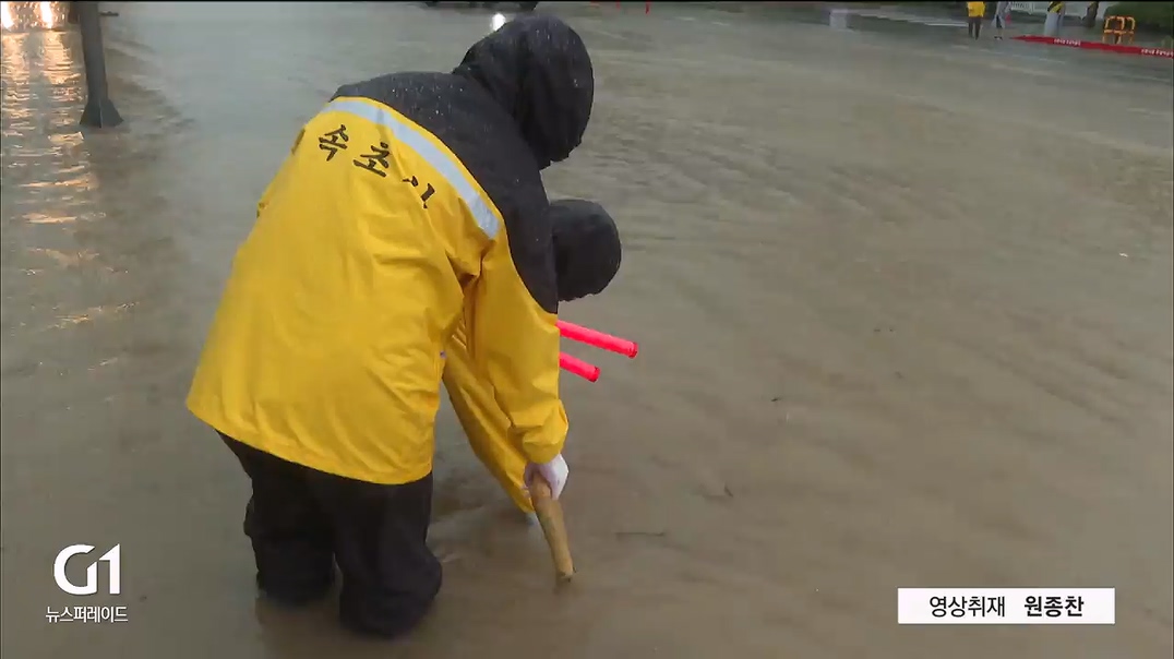 시간당 75mm의 비가 내리자 청호동 일대 대부분이 물에 잠깁니다.