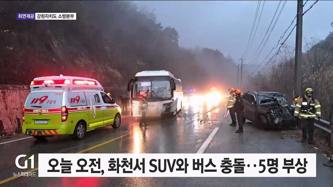 오늘 오전, 화천서 SUV와 버스 충돌..5명 부상