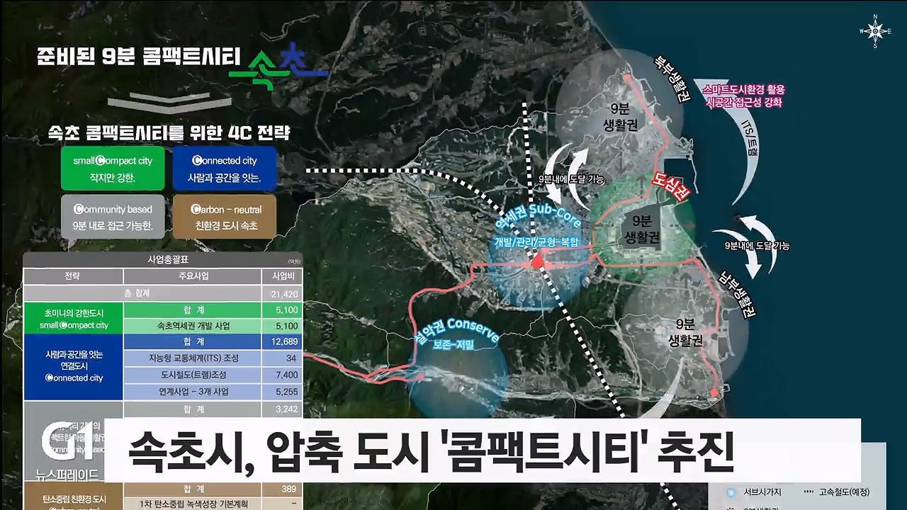동서고속철도의 종착지인 속초시는 도시 전체를 압축해 지역 어느 곳이든 9분 이내면 도달할 수 있는 '콤팩트시티' 모델 도입을 추진하고 있습니다.