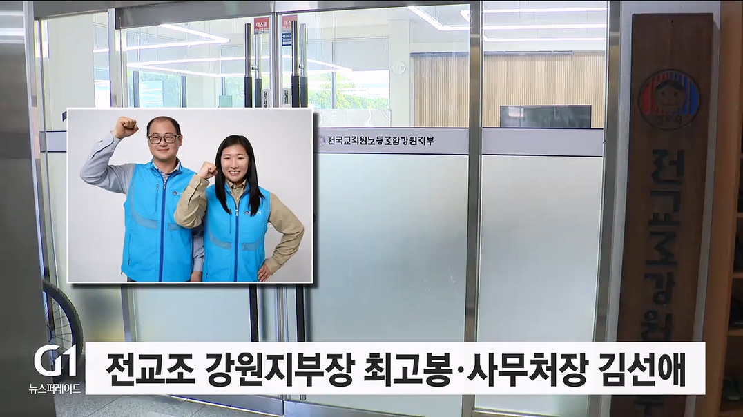 강원지부장과 사무처장 선거에 기호 2번 최고봉 후보와 김선애 후보가 득표율 54.09%를 기록해 당선됐습니다.