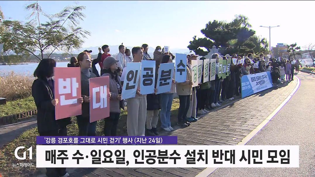 "진짜 수질개선을 하려고 한다면 분수가 아닌 다른 방법으로도 충분히 수질 개선할 수 있는 다양한 방법이 있을 거라고 생각하고요. 그런 방법을 찾아서 예산을 투입하고 해야지 경포호의 자연성을 훼손하는 방향으로 개발이 되어서는 안된다고 생각합니다."