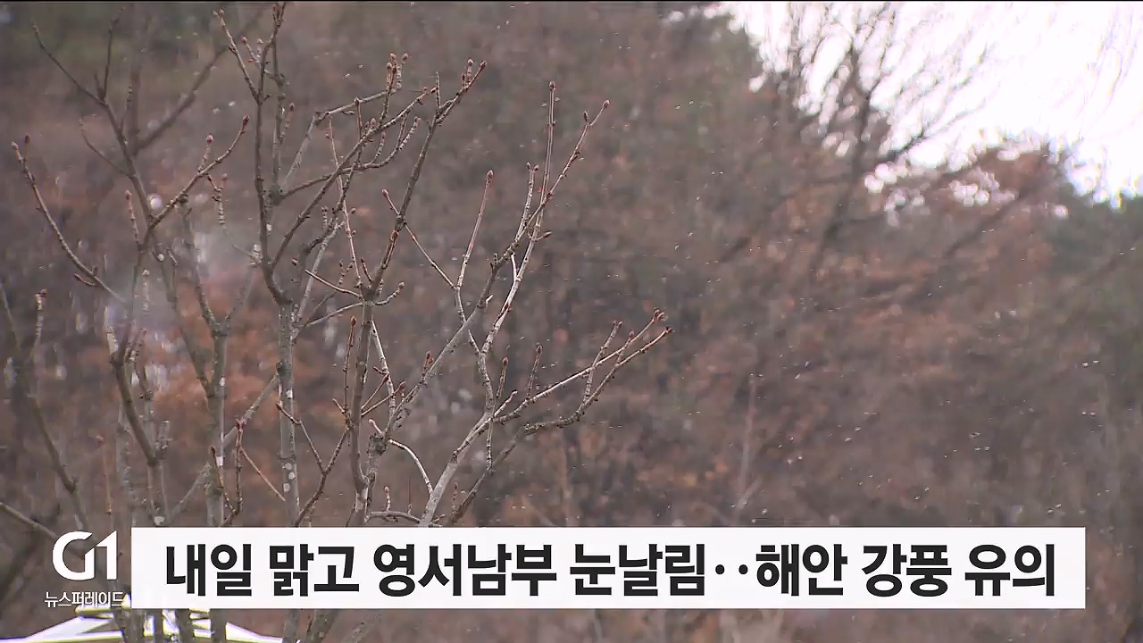 강원자치도는 내일 대체로 맑은 가운데 아침까지 영서남부권을 중심으로 0.1cm 미만의 눈이 날리겠습니다.