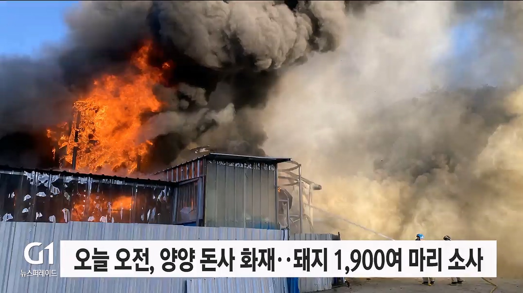 오늘 오전, 양양 돈사 화재..돼지 1,900여마리 소사