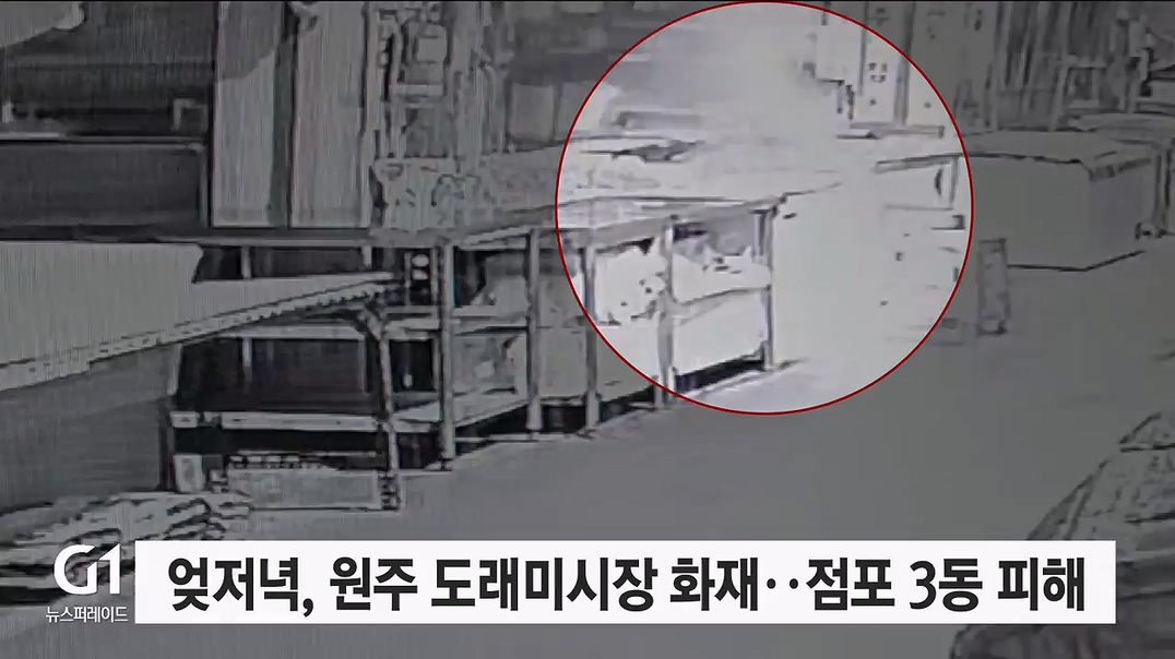 엊저녁 원주 도래미시장 화재..점포 3동 피해