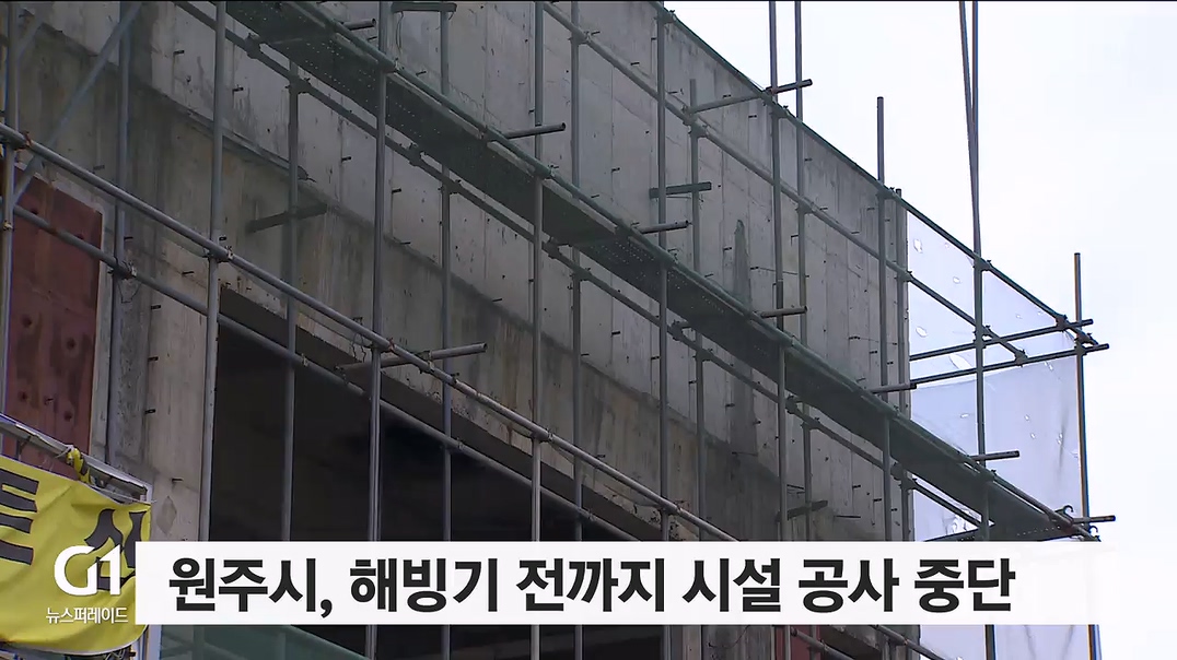 원주시가 동절기 부실 시공 방지를 위해 오는 16일부터 내년 해빙기 도래까지 시설 공사를 중단합니다.