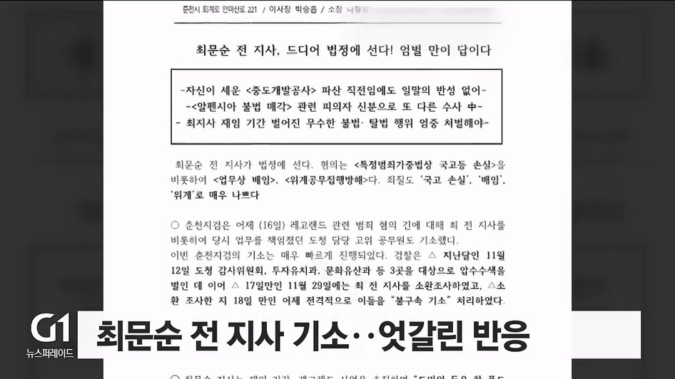 "최문순 전 지사와 야당에 대한 부당한 정치적 공격을 멈춰달라"고 강조했습니다.