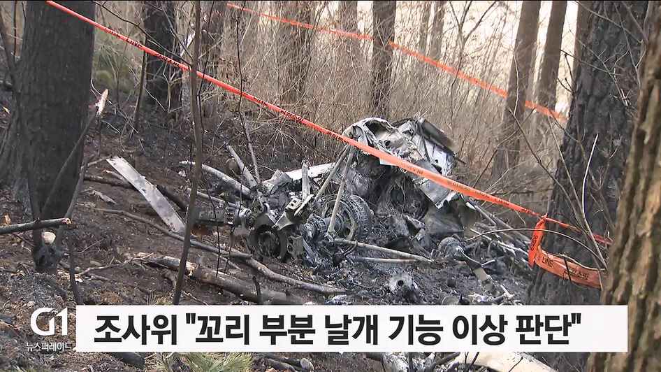 국토교통부 항공철도사고조사위원회는 보고서를 통해 사고 당시 헬기 꼬리 부분 날개의 회전 또는 날개 각 조절 기능 이상으로 헬기가 추락한 것으로 판단된다고 밝혔습니다.