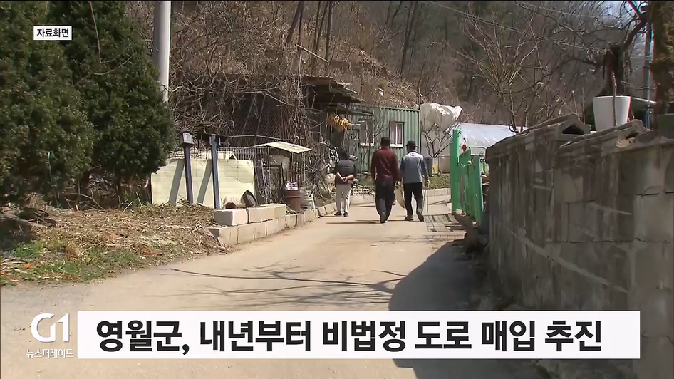 영월군이 내년부터 주민 통행 불편 해소와 사유 재산권 보호를 위해 비법정 도로 매입을 추진합니다.