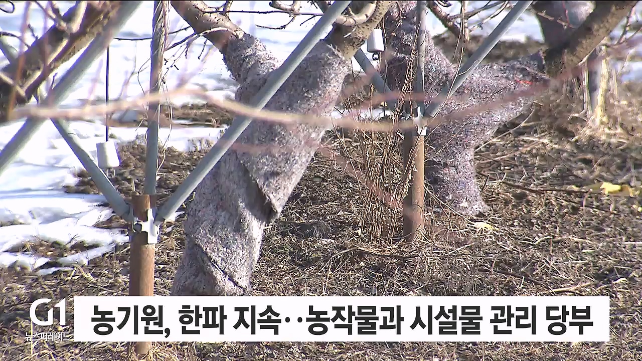 기술원은 과수의 경우 동해가 발생하기 쉬운 주간부를 부직포나 볏짚 등으로 감싸 보호해 주고, 과수원 내 관수시설에 대한 사전점검이 필요하다고 밝혔습니다.