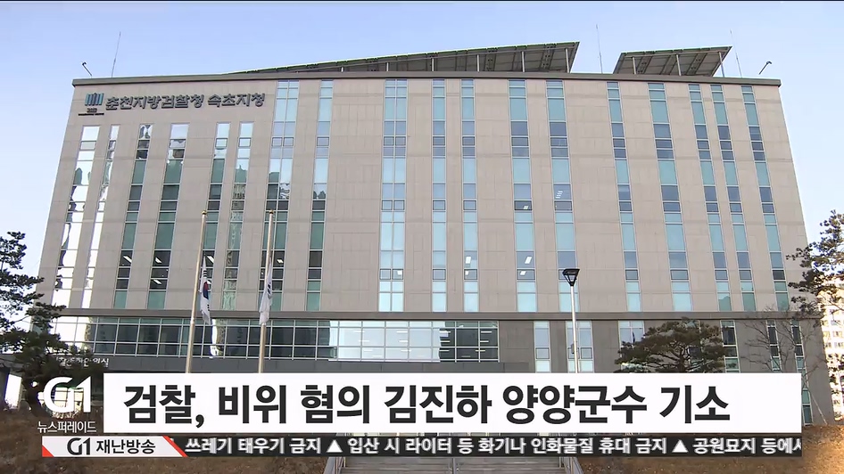 춘천지검 속초지청은 부정 청탁금지법 위반과 뇌물수수, 강제추행 혐의로 김진하 양양군수를 구속기소 하고,
