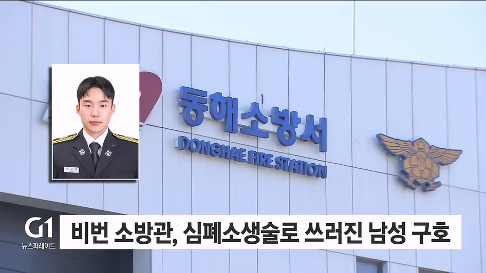 동해소방서에 따르면, 천곡119안전센터 소속 배근표 소방사는 비번인 오늘(10일) 오전11시쯤 강릉의 한 헬스장에서 운동을 하다가 같은 건물 안에 쓰러진 남성을 구했습니다.