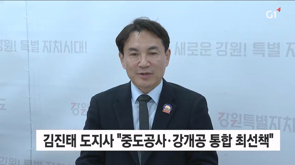 김진태 강원자치도지사는 오늘(17일) 도청 기자실에서 가진 현안 브리핑에서 "두 공기업의 통합은 현 단계에서 선택할 수 있는 가장 합리적인 대안"이라고 강조했습니다.