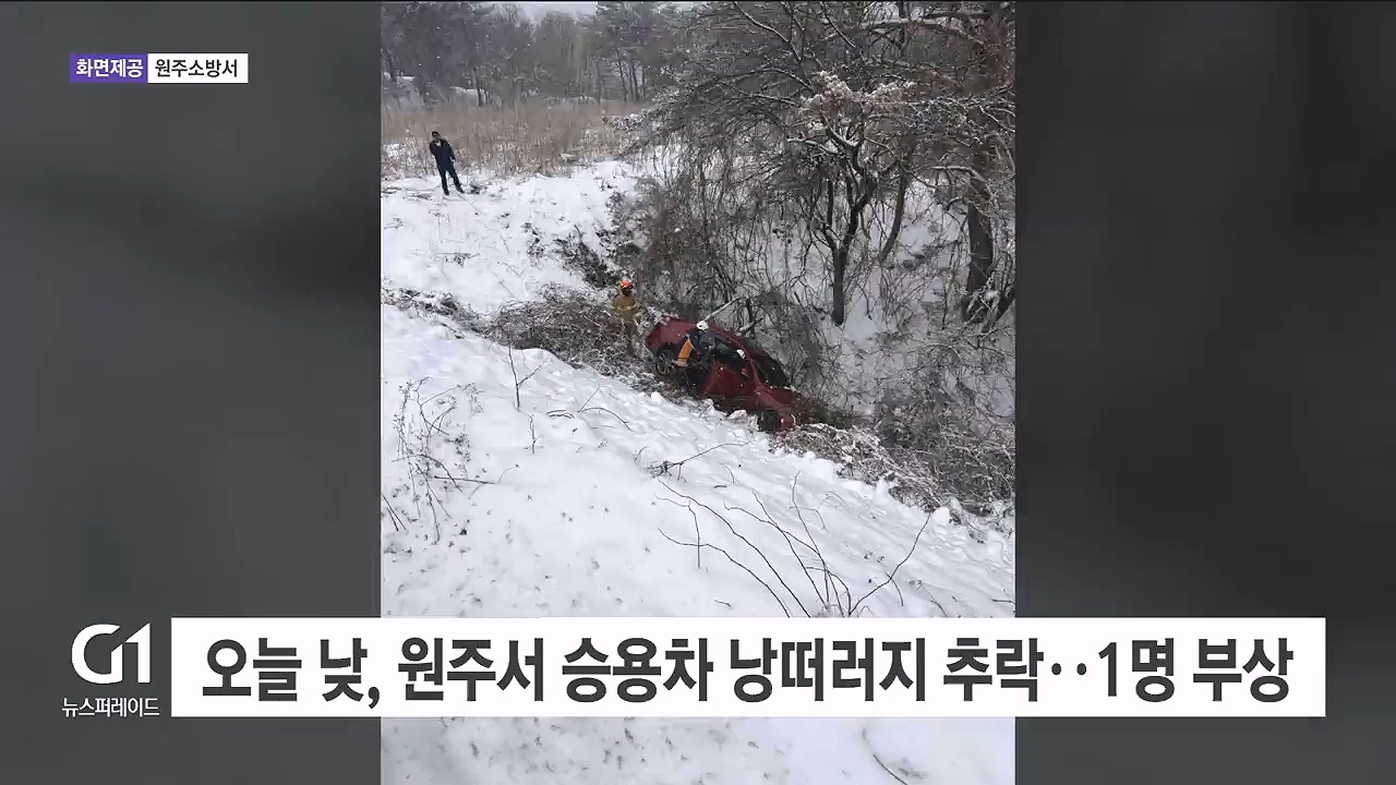 오늘 낮, 원주서 승용차 낭떠러지 추락..1명 부상