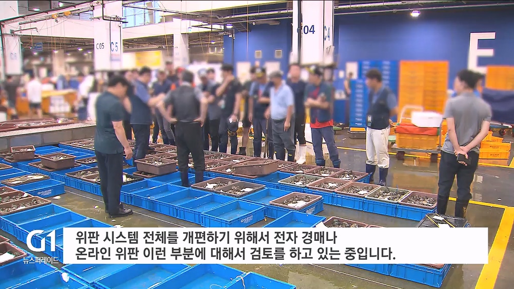 "그런 위판장들 같은 경우는 이걸 적용함에 있어서 시설이 조금 미비한 상황으로 저희가 생각하고 있습니다. 위판 시스템 전체를 개편하기 위해서 전자 경매나 온라인 위판 이런 부분에 대해서 검토를 하고 있는 중입니다."