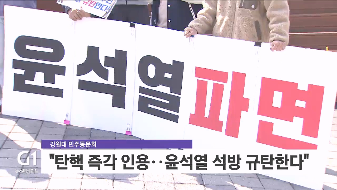 강원대학교 민주동문회와 진보 시민단체는 오늘(10일) 강원대학교 후문에서 기자회견을 열고 윤석열 대통령의 석방을 규탄하고, 헌법재판소의 즉각적인 탄핵 인용을 촉구했습니다.