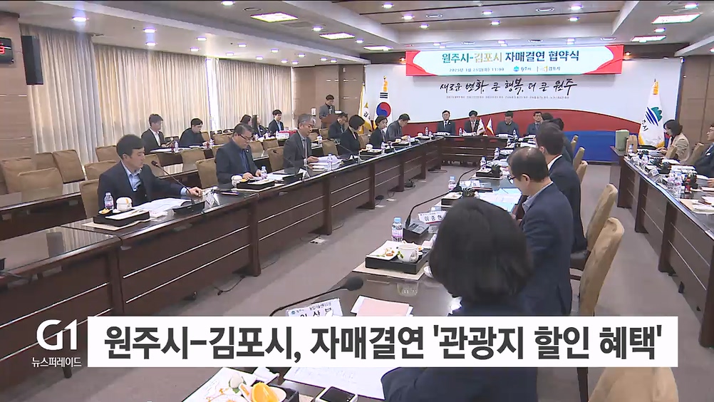 원강수 원주시장과 김병수 김포시장 등이 참석한 가운데 두 지자체는 오늘(25일) 원주시청에서 자매결연 업무협약을 체결했습니다.