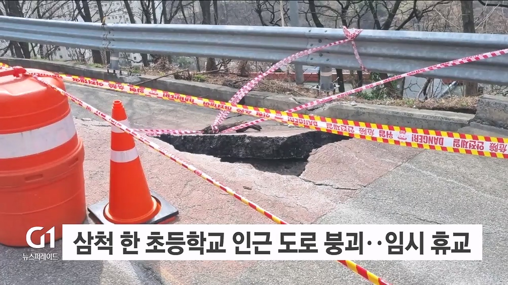 삼척 한 초등학교 인근 도로 붕괴..임시 휴교