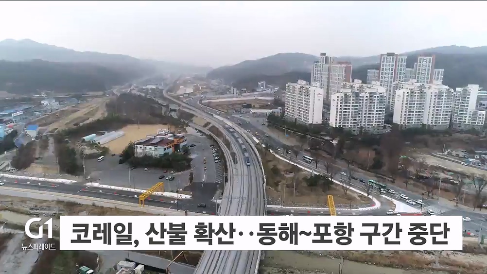 한국철도공사는 경북지역 산불이 확산됨에 따라 동해~포항을 잇는 동해선과 영주~안동~영천을 잇는 중앙선 일부 구간의 열차운행을 첫차부터 안내 시까지 중단한다고 밝혔습니다.