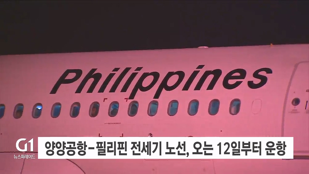 강원자치도에 따르면 양양국제공항과 필리핀 마닐라 공항을 연결하는 필리핀항공 전세기가 오는 12일부터 24일까지 운항에 나섭니다.