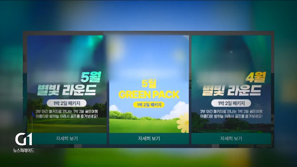 골프장 홈페이지 첫 화면에 보이는 건 1박 2일 패키지.