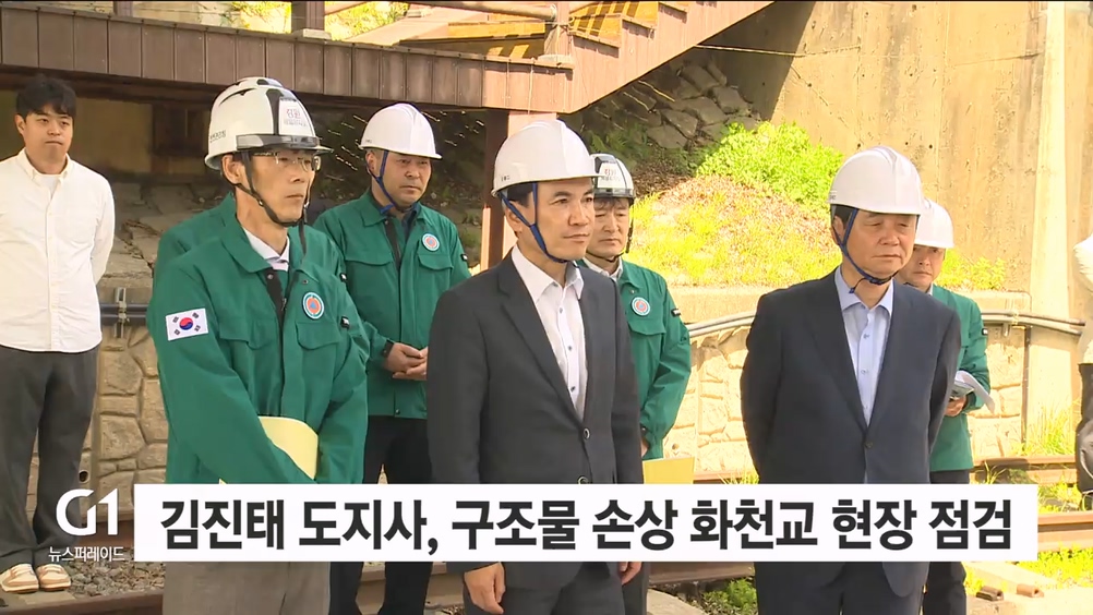 김진태 강원자치도지사가 어제(7일) 구조물 손상으로 전면 통행이 제한된 지방도 461호선 화천교를 찾아 현장을 점검했습니다.