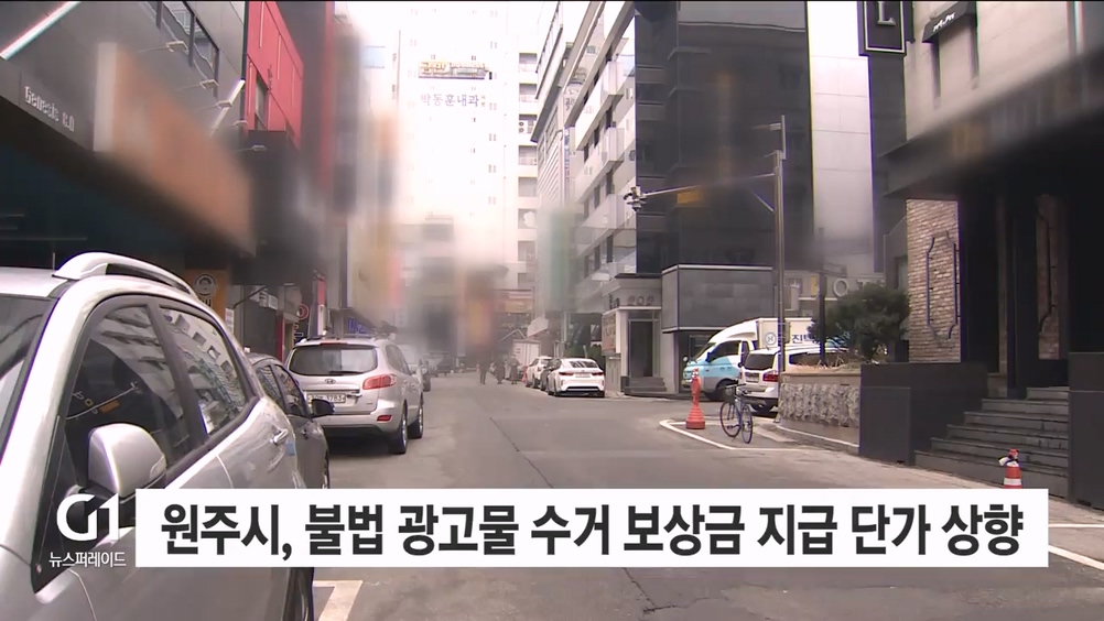 원주시가 쾌적한 도심 환경을 만들기 위해 불법 광고물 수거 보상금을 올리기로 했습니다.