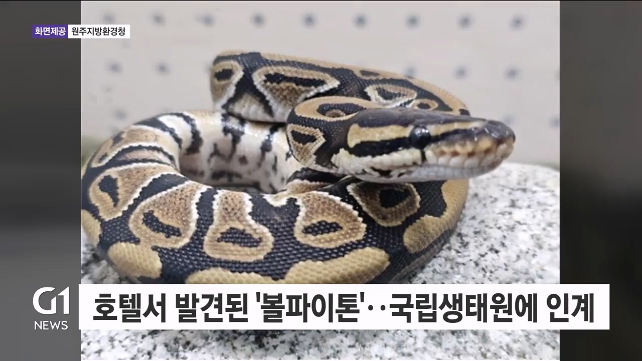 지난달 양양의 한 호텔에서 발견된 국제 멸종위기종 '볼파이톤'이 국립생태원에 인계될 예정입니다.