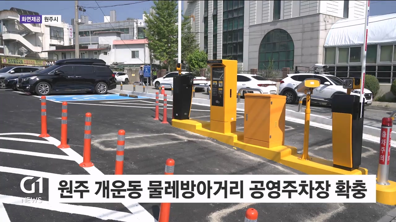 원주시가 만성적인 주차난을 겪던 개운동 물레방아거리에 모두 46면의 공영주차장 조성을 완료했습니다.