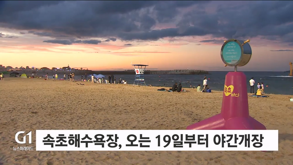 다음 달 10일까지 속초해수욕장 중앙통로 인근 130m 구간을 야간수영 허용 구역으로 정하고, 기존 오후 6시에서 밤 9시까지 수영 가능 시간을 연장합니다.