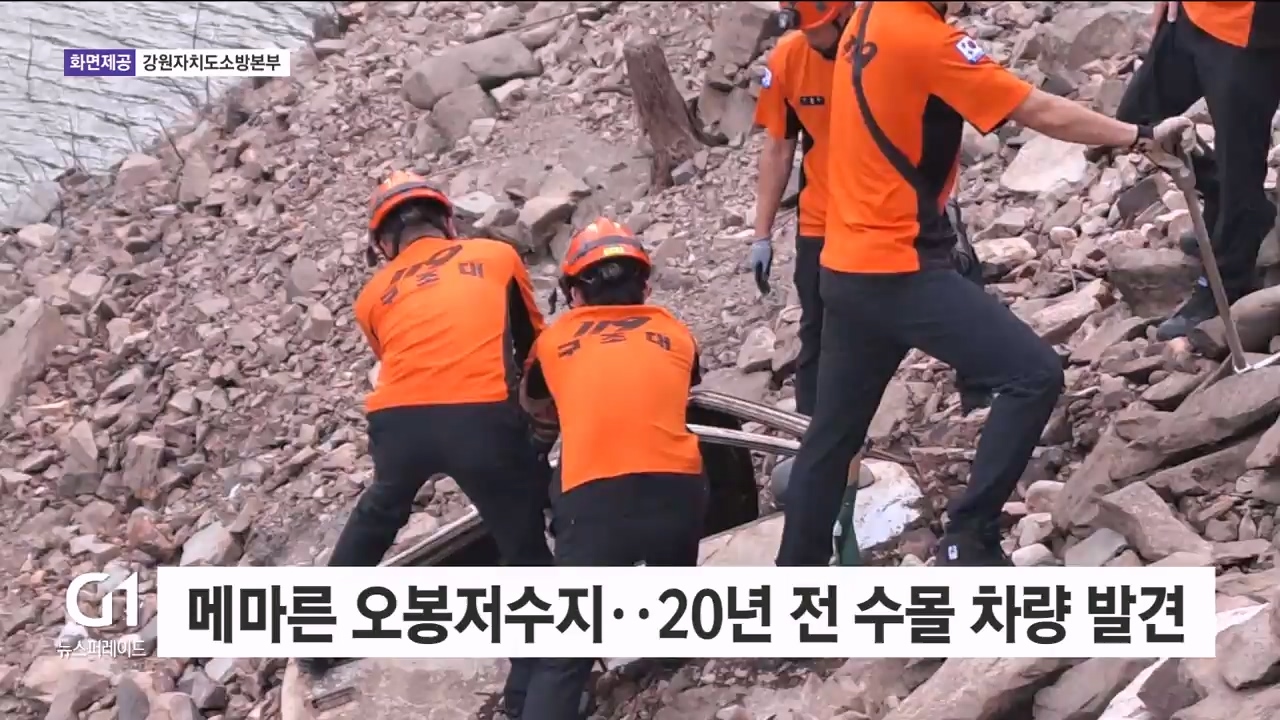메마른 오봉저수지..20년 전 수몰 차량 발견