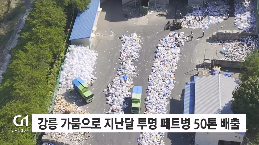 가뭄 여파로 강릉 지역 투명 페트병 배출량이 크게 증가한 것으로 나타났습니다.