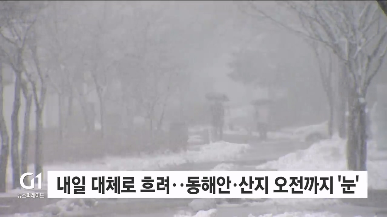 내일 대체로 흐려..동해안·산지, 오전까지 '눈'