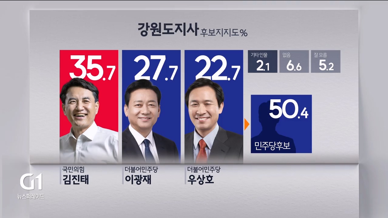G1방송에선 새해를 맞아 올해 지방선거를 앞둔 강원도민 민심을 가늠하기 위한 대규모 여론조사를 실시했습니다.