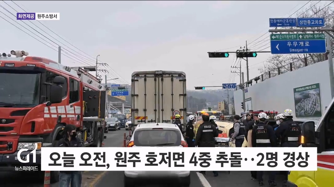 오늘 오전, 원주 도로서 4중 추돌..2명 경상