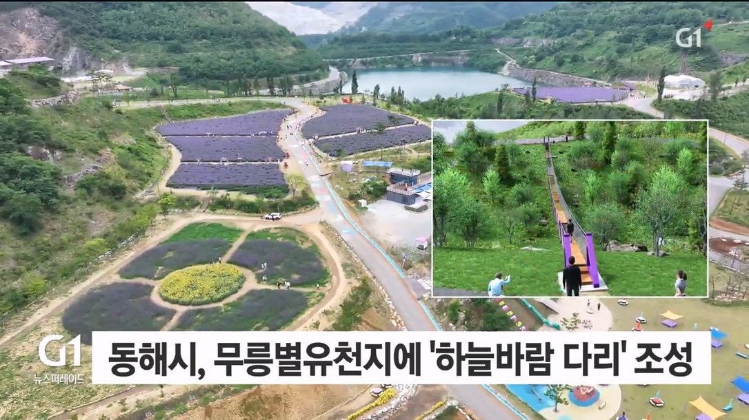동해시가 오는 6월 라벤더 축제 개장을 앞두고 무릉별유천지에 '하늘바람 다리'를 조성합니다.