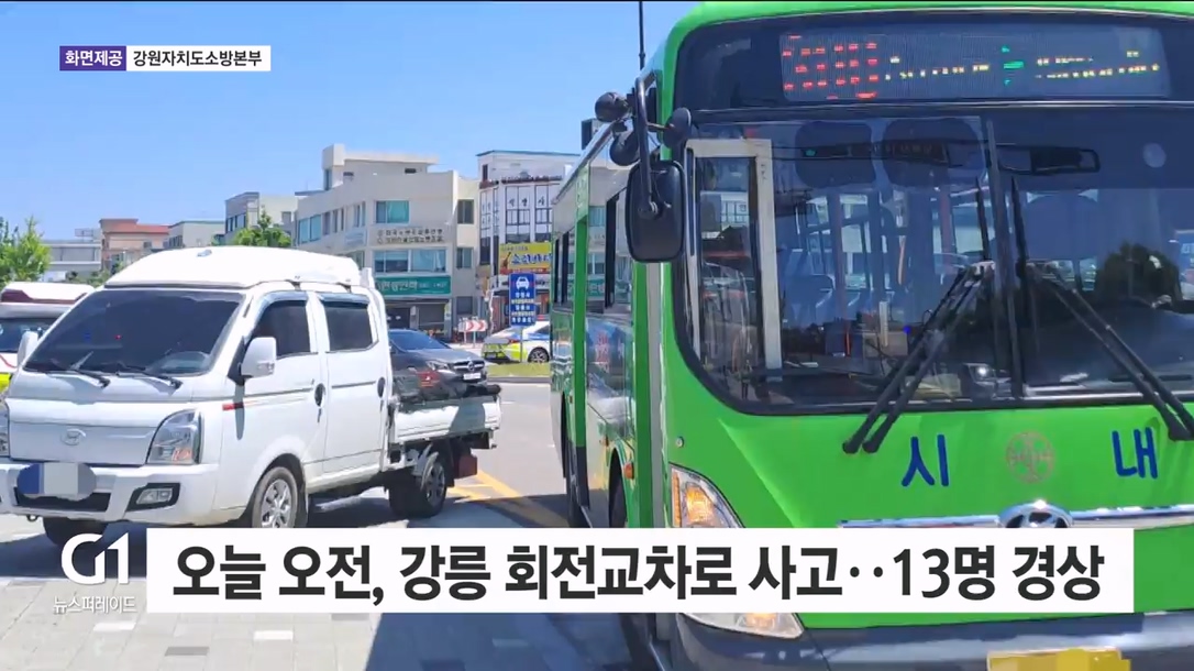 오늘 오전, 강릉 회전교차로 충돌 사고..13명 경상