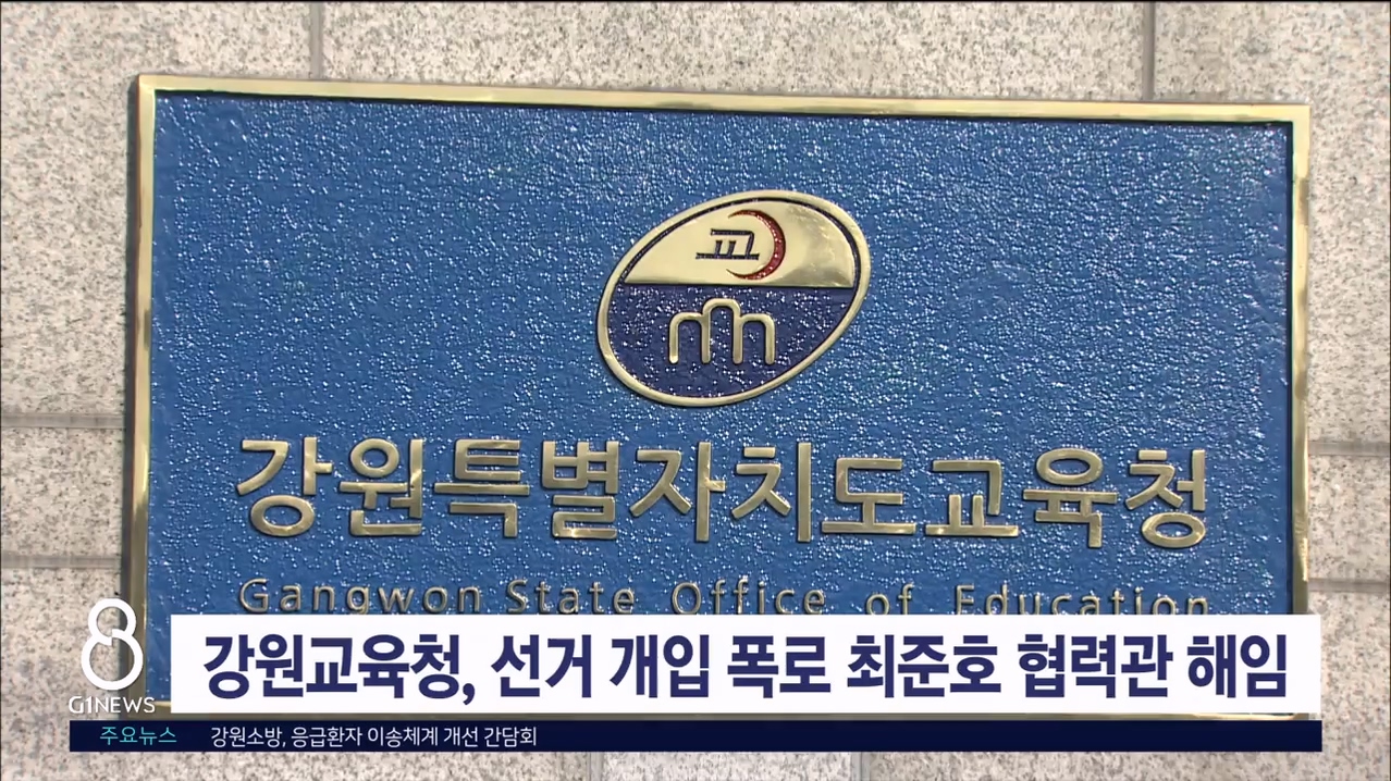 강원자치도교육청이 지난 8월, 교직원 선거 개입을 폭로 하고, 사표를 낸 뒤 잠적하는 등 논란을 일으킨 최준호 정책협력관을 '해임' 처분했습니다.
