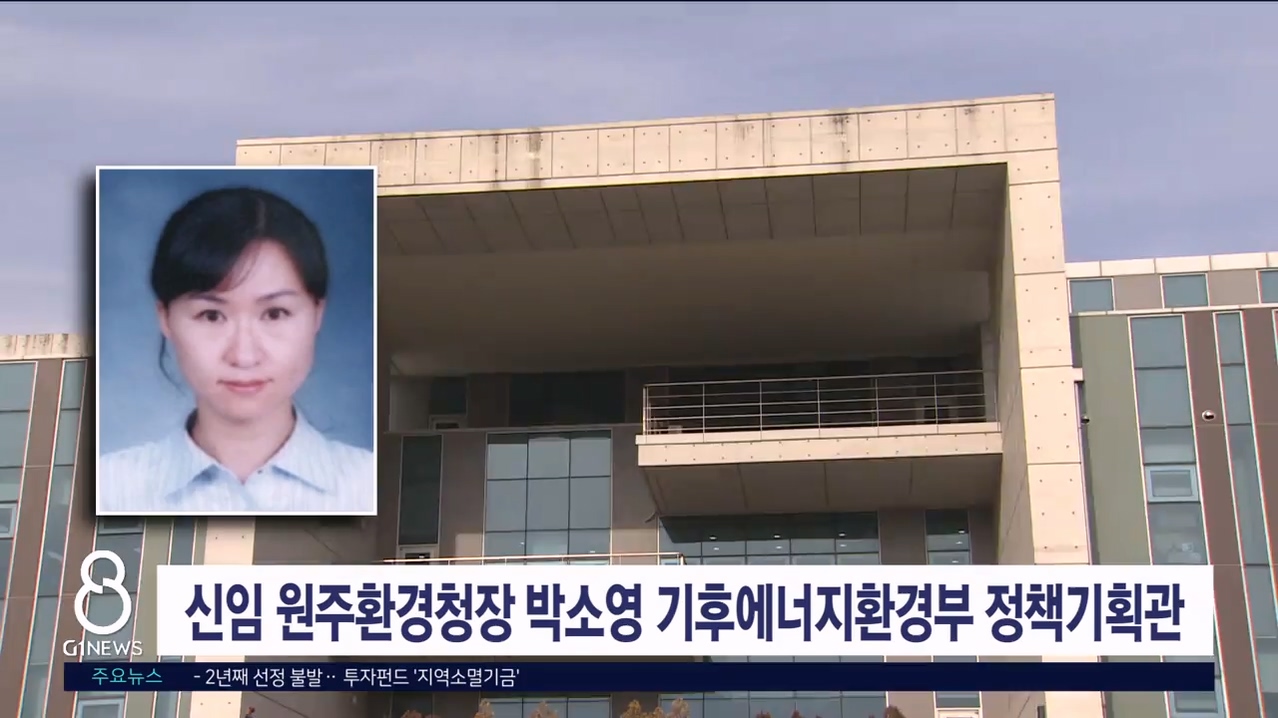 제38대 원주지방환경청장에 박소영 기후에너지환경부 정책기획관이 임명돼 오는 15일부터 업무를 시작합니다.