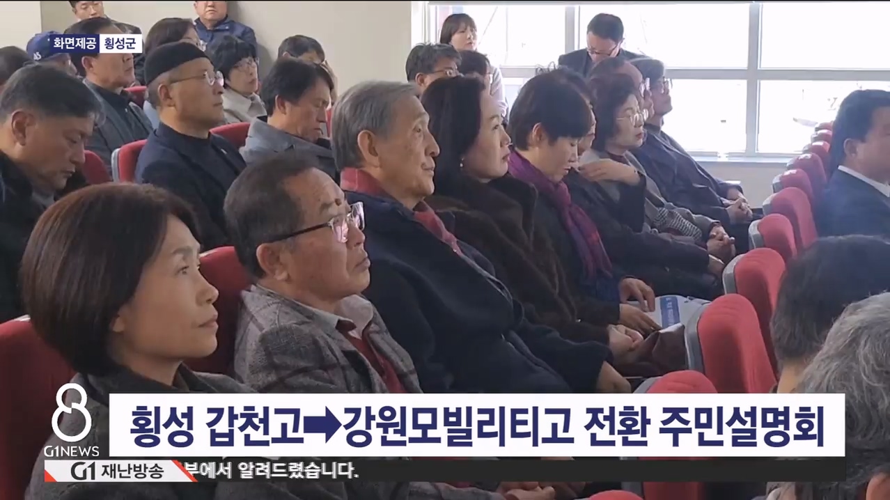 횡성 갑천고를 가칭 강원모빌리티고로 전환하기 위한 주민 설명회가 오늘(15일) 횡성 청소년수련관에서 열렸습니다.