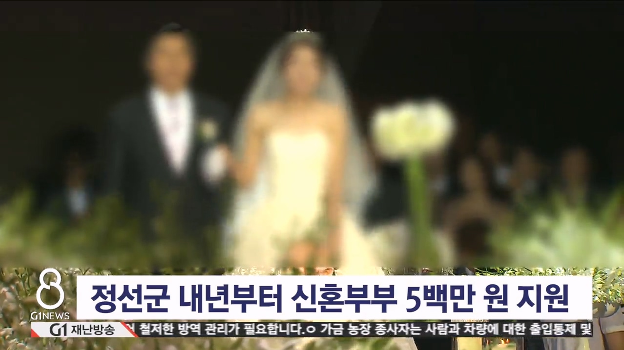 정선군이 내년부터 신혼부부를 위한 결혼장려금 제도를 시행합니다.